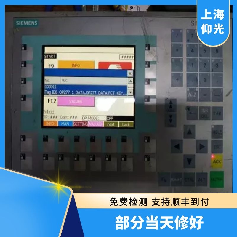 上海仰光針對西門子觸摸屏DP口燒壞維修,西門子觸摸屏MP通訊口燒壞維修,西門子觸摸屏USB通訊口燒壞維修,部分當天可以修好測試好發(fā)出,西門子(觸摸屏)工控機維修故障:維修故障包括:按鍵損壞,電源板故障、高壓板故障,液晶故障、主板 壞、上電黑屏、 花屏、暗屏、觸摸失靈,不能正常開機、觸摸問題、按鍵問題、屏幕顯示問題(屏碎、花屏、白屏、黑屏 等)、通訊問題(觸摸無反應、觸摸反應慢等)、電源故障、主板問題、系統(tǒng)問題等 工控機無法安裝操作系統(tǒng);工控機按下開 關(guān),可以看到指示燈亮,但屏幕無顯示;工控機開機屏幕出現(xiàn)英文或數(shù)字報錯,無法進入系統(tǒng);工控機不識別光驅(qū)、硬盤、軟 驅(qū)、串口、并口、網(wǎng)卡口等;工控機按下開關(guān),沒有任何反應(無法開機);工控機經(jīng)常死機、掉電或自動重啟;工控機密碼遺 忘,無法進入系統(tǒng);工控機電池無法充電;