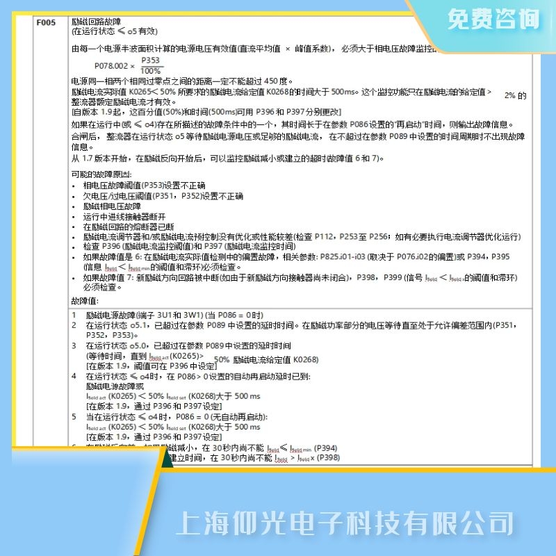 上海西門子直流調(diào)速器維修電話-仰光電子維修公司。免費(fèi)檢測(cè),免費(fèi)咨詢,24小時(shí)熱線電話:13817011982,上海西門子6RA系列直流調(diào)速器報(bào)F005維修,上海西門子6RA系列直流調(diào)速器報(bào)勵(lì)磁回路故障維修: